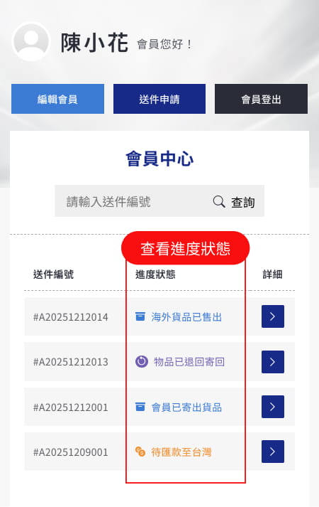 會員中心可查看送件進度